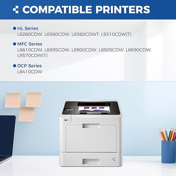 - To use with: Compatible for Brother HL-L8260CDW, HL-L8360CDW HL-L8360CDWT,HL-L9310CDW(T) MFC-L8610CDW, MFC-L8895CDW MFC-L8900CDW, MFC-L8905CDW MFC-L8690CDW,MFC-L9570CDW(T) DCP-L8410CDW Laser Printer.