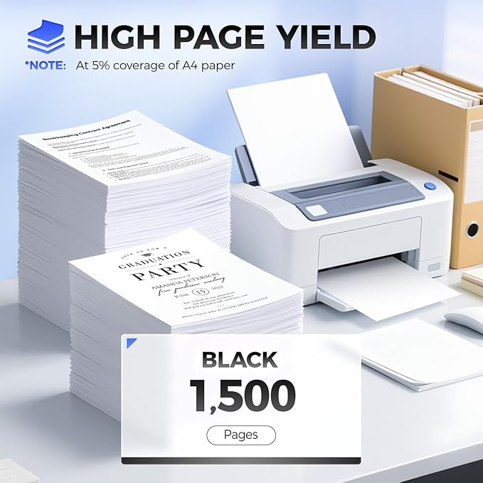- High Page Yield: Up to 1,500 pages per 50F1000 Black Toner Cartridge,(at 5% coverage of A4 Paper), High Yield Version 50F1000 Toner Cartridge.