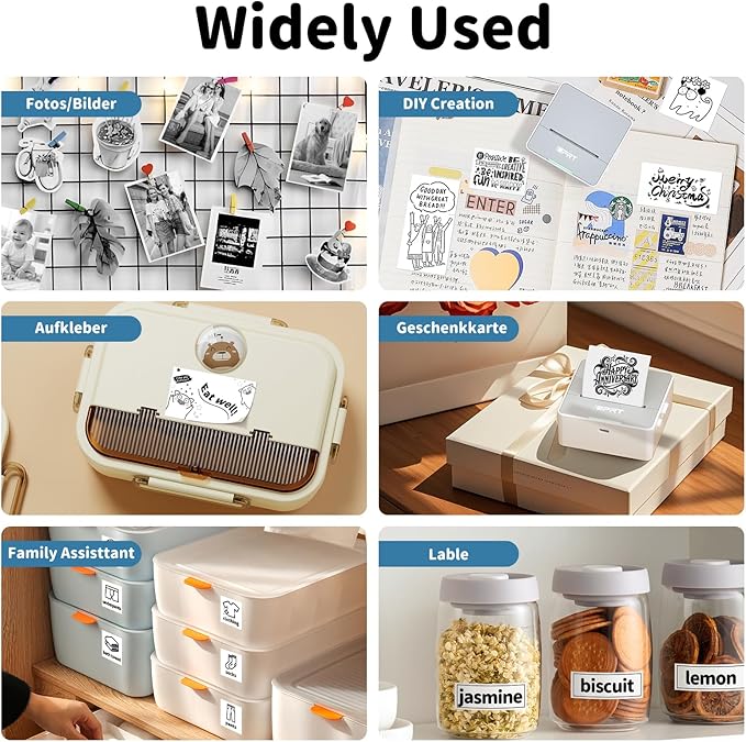- Inkless Printing: No ink or toner needed! This label printer uses thermal technology to deliver crisp, 203dpi resolution, perfect as a small printer for home use or a travel printer. Just load the thermal sticker paper and start printing