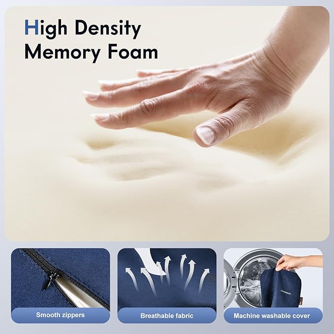 Coverado Memory Foam Car Seat Cushion and Lumbar Support Pillow for Car, Ergonomic Office Chair Cushion for Lower Back Pain Relief, Breathable & Non-Slip for Car, Home, and Office Use, Blue