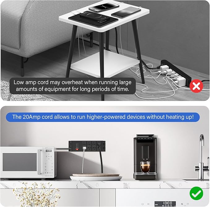 - 25FT Heavy duty extension cord 12 awg, can perfect for carrying 15Amp, 1875w of full power. And running a lot of equipment for long periods of time and without overheating.
