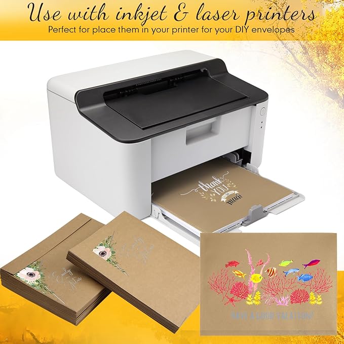 - Inkjet and Laser Printers: our booklet envelopes have a smooth surface, thickness and packed flat for laser printers and smudge free, suitable for customize or label your envelopes