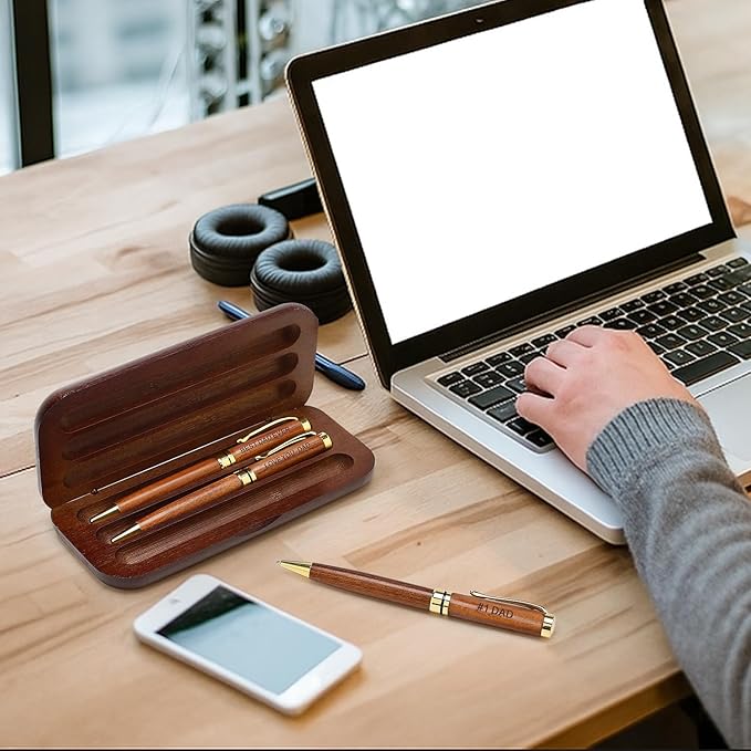 - 🎁 GIFT PACKAGE INCLUDED: 3 x wood pens, 1 x wooden pen box gift, 6 x black refills for ballpoint pens, 1 x Congratulation card.
