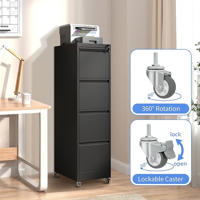 4 Drawer Mobile File Cabinet, Filing Cabinet Home Office for Letter, Legal Size, Black