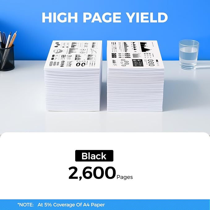 - Yield & Version: 2,600 pages per E310 Black Toner Cartridge (at 5% Coverage). High Yield Version E310 toner cartridges.