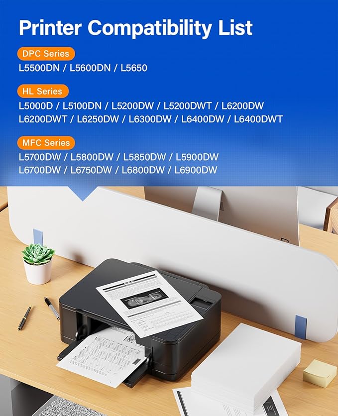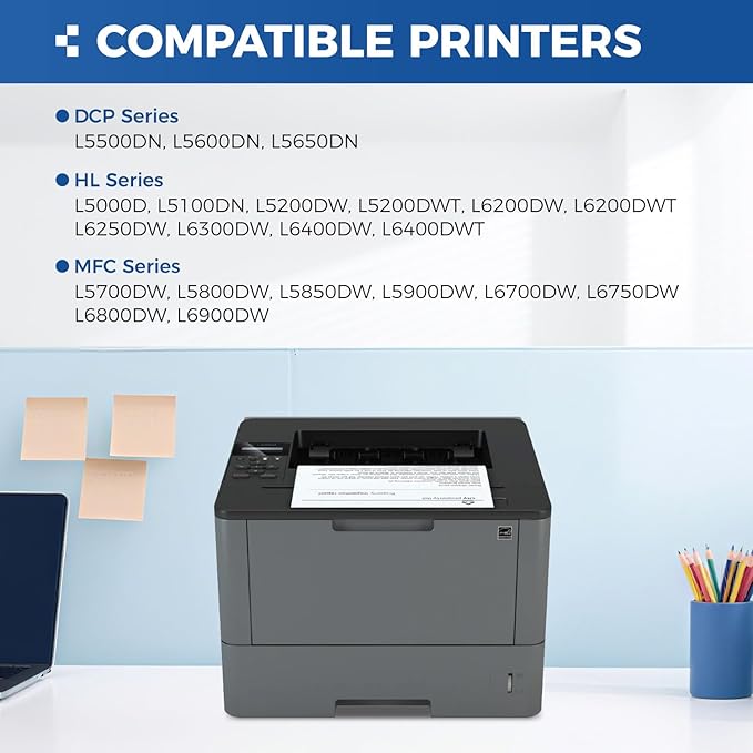 - To use with: Compatible for Brother DCP-L5500DN, DCP-L5600DN, DCP-L5650DN HL-L5000D, HL-L5100DN, HL-L5200DW, HL-L5200DWT, HL-L6200DW HL-L6200DWT, HL-L6250DW, HL-L6300DW, HL-L6400DW, HL-L6400DWT MFC-L5700DW, MFC-L5800DW, MFC-L5850DW, MFC-L5900DW MFC-L6700DW, MFC-L6750DW, MFC-L6800DW, MFC-L6900DW Laser Printer.