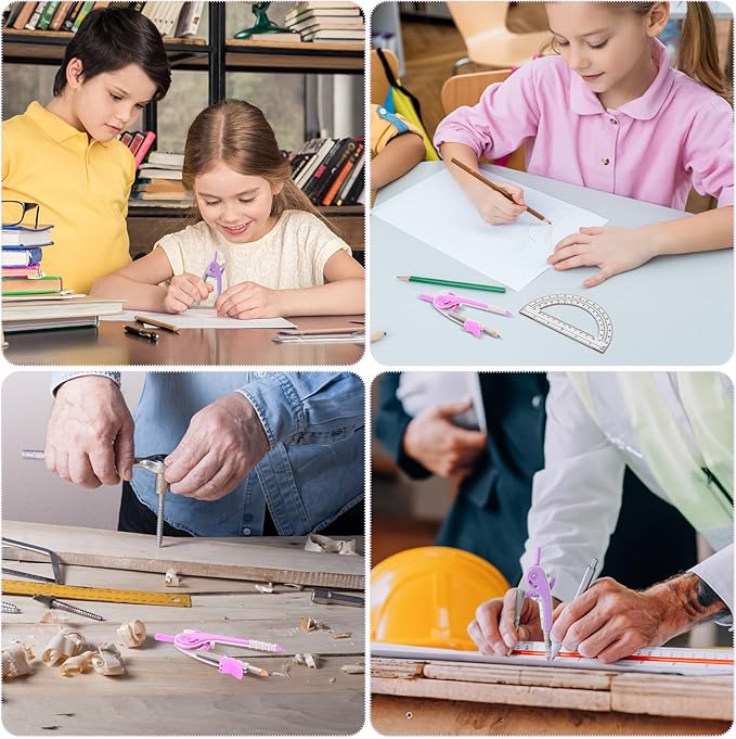 - 2 Diverse tips design compass: compass is made of plastic, sturdy mechanism can hold a radius well; The opposite side of the pencil end is an adjustable separated jaw, which allows you to fix the pencil