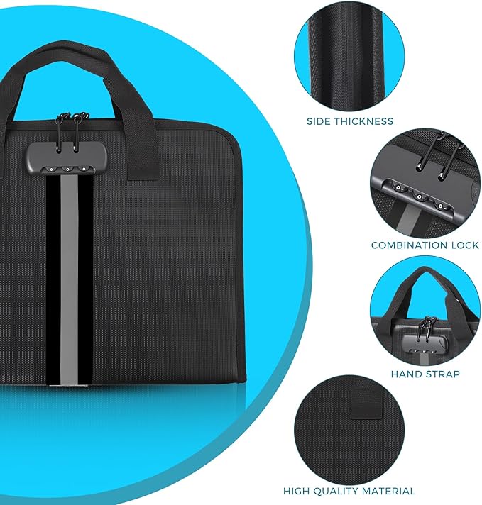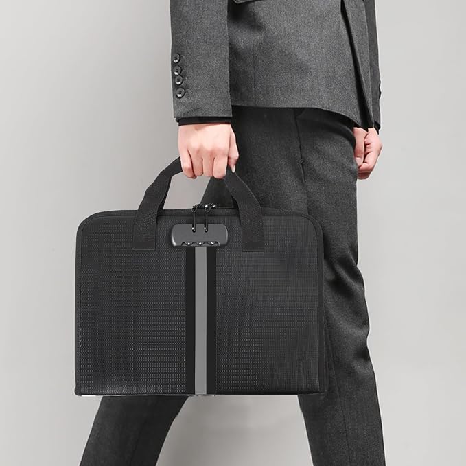 - High-Quality Materials:Fireproof expanding file organizer made of 3-layered silicone-coated fiberglass, withstands extreme temperatures up to 2500β has passed SGS testing(UL94 certified). Protects important documents from fire, flood, and wet weather conditions