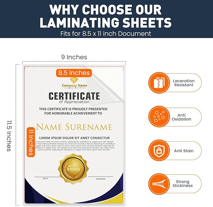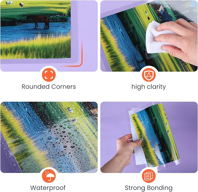 - Excellent Clarity:The laminating sheets only use high-quality adhesive for best transparency to ensure that the photos and documents are clearly visible let important information show through! Round corner design, safe to use