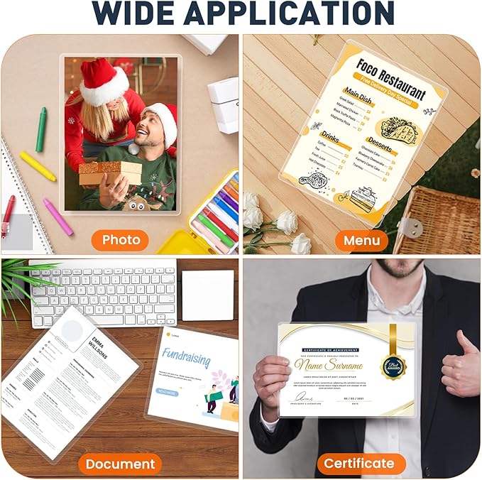 - Application:Perfect for protecting certificates,signs,photos,awards,calendars,kids artworks.It can seal and protect your documents it can be used in classroom, home and office.Compatible with all thermal laminator machine brands