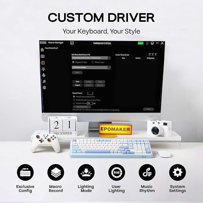 - Elite Gaming Controller with Low Latency: Gaming like a pro with the exceptional TH99 Custom Keyboard with speed, precision and style. With detachable cable and lubed switches, it’s ready in premium quality out of box. The 1000hz polling rate and 2ms low latency in cable mode is the crucial addition for you to step up in combat gaming, while the NKRO and anti-ghosting function level up your productivity and accuracy in leisure. Set macro as common action trigger or reform function keys as mode switcher for gaming efficiency, as the customizable TH99 keyboard becomes your formidable companion in gaming and life.
