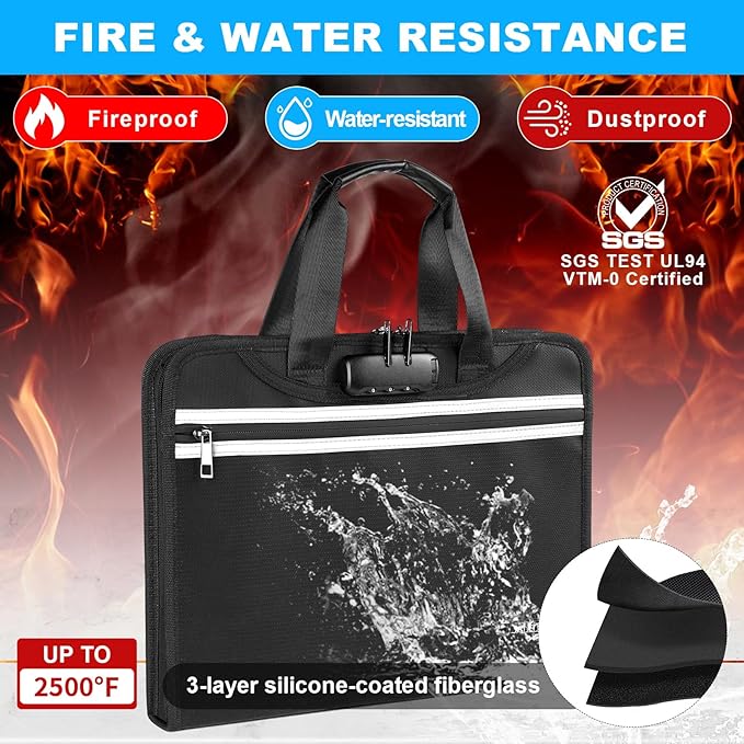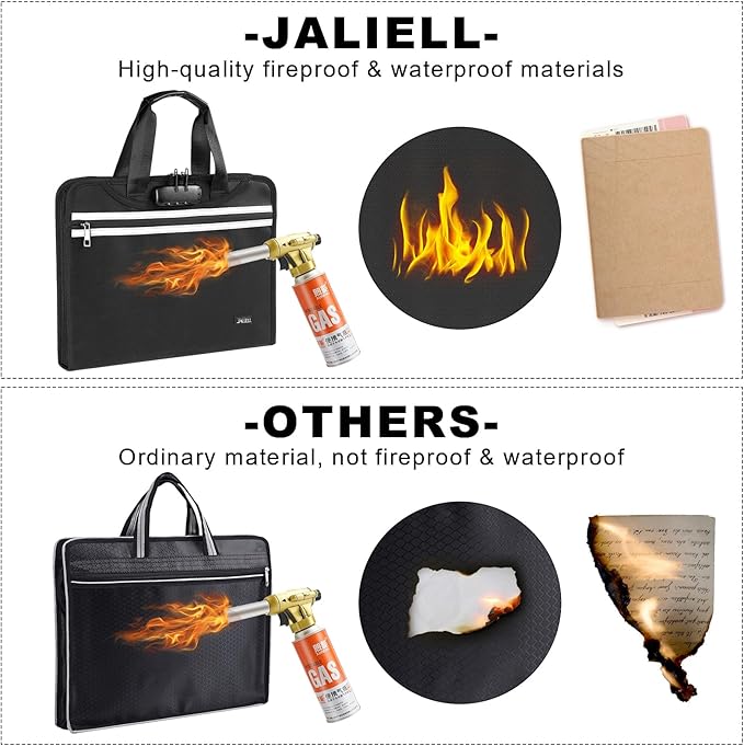 - Fireproof, Waterproof & Dustproof: Protect your vital documents with the Jaliell Fireproof Accordion File Organizer! Featuring 3-layer silicone-coated fiberglass that withstands extreme heat up to 2500°F (SGS UL94 V-1 certified), keeping your birth certificates, passports, and legal papers safe in emergencies. The waterproof and dustproof exterior guards against spills, rain, and debris, ensuring ultimate protection
