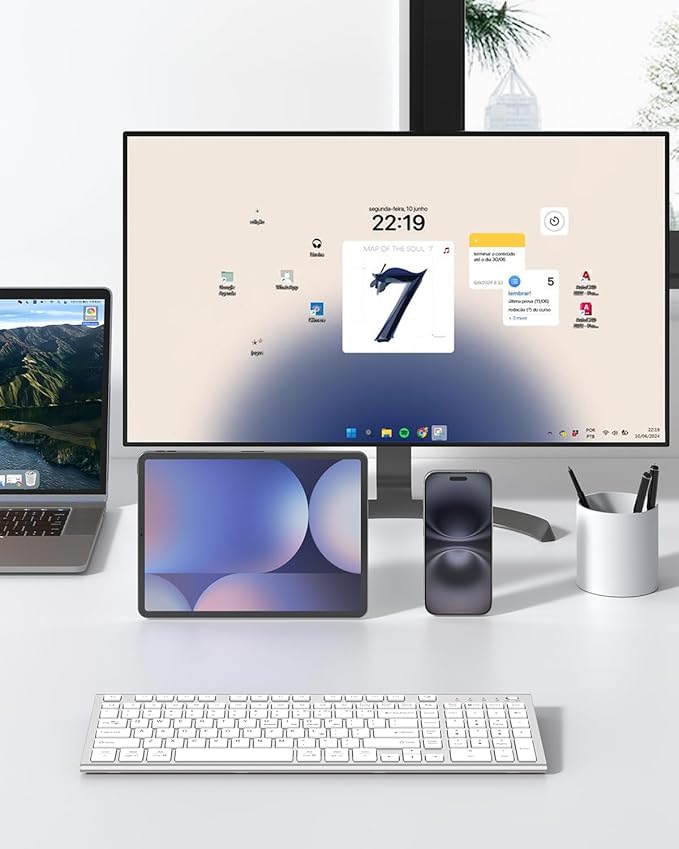 - Special Feature : 3 Bluetooth + 2.4G USB for multi devices, Compatible with Android/iOS/macOS/Windows systems, Ergonomic, Ergonomic Silent Slim, Rechargeable USB C 3 Bluetooth + 2.4G USB for multi devices, Compatible with Android/iOS/macOS/Windows systems, Ergonomic, Ergonomic Silent Slim, Rech… See more