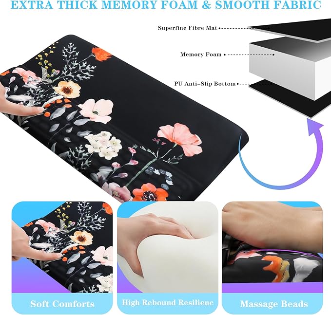 - 【Massage Bump Design】 The design of the massage bump can effectively relieve wrist pain and fatigue, prevent sweating, and keep the wrist in the most comfortable state when using mousepad.