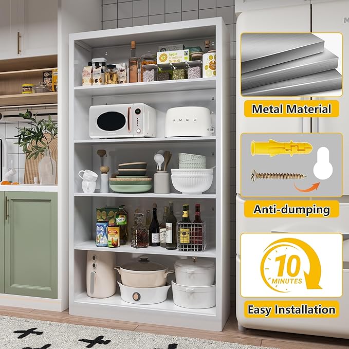 - Sturdy & Reliable Metal Living Room Shelf: Unlike small narrow bookcase particle board, this book shelf white for bedroom provides superior strength, durability, and a long lifespan. Rustic bookshelf can hold more books and includes anti dumping device for added stability