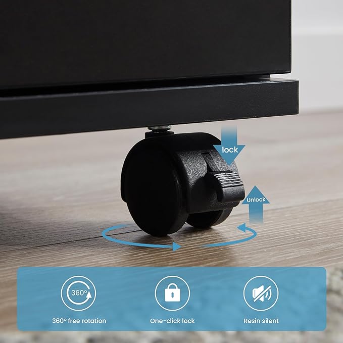 - Smooth-Rolling Casters for Mobility – Equipped with four durable casters (two lockable) for easy movement and stability, allowing you to reposition the cabinet effortlessly as needed.