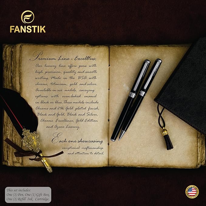 Black & Silver Luxury fountain pen (Made In USA) fancy gift set for women, Real 24K Gold Plating, Professional executive pen gift set for men (Lux fountain Black-Silver)