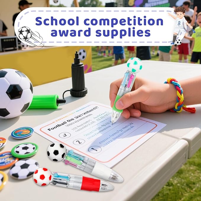 30Pcs Mini Multicolor Pens in One 4-in-1 Cute Pens Bulk for Kids, Ballpoint Pen for Birthdays and Children's Parties, Fun Gifts Assorted Ink Kawaii Pen(Soccer)
