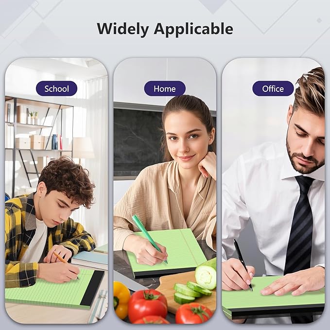 - Premium Colored Note Pads: The 8.5"x11" Legal pads are made from thick paper which is thicker and more durable than regular notepads paper. The sturdy backing broad ensures the pages have a support and can withstand frequent use