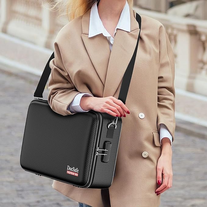 - Fireproof Box with Lock: Protect your valuables with the built-in high-quality combination lock (No keys required). Design with a strong handle&a detachable shoulder strap for carrying everything you needed easily. The fireproof box is suitable for business, travel, office, school, home storage, of course, giving it as a gift to your family is also a good choice. Fireproof box is both fireproof and water-resistant, ensuring your documents stay protected during fires, floods, or wet weather
