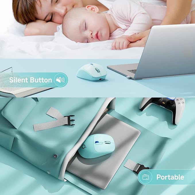 - Portable Wireless Mouse: EWEADN Q5 Wireless Mouse is lightweight and fits in any bag; Take it anywhere like home, office, coffee shop, etc. Stow the USB receiver inside the wireless mouse when not in use. Responsive buttons provide a soft click with less noise.
