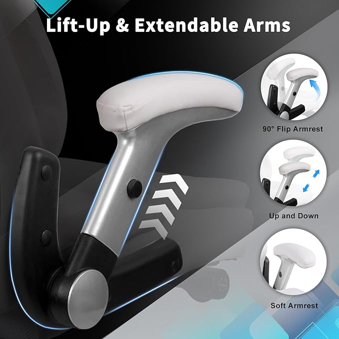 - 【Lift-Up Armrests - Space-Saving & Convenience】: This ergonomic high-back office chair features adjustable armrests that allow you to enjoy maximum relaxation while occupying minimal space. The armrests can be easily adjusted during use and conveniently tucked away when not needed, creating more room and facilitating movement. Whether you're typing, writing, or taking a break, our comfy high back heavy duty office chair ensures a satisfying seating experience.