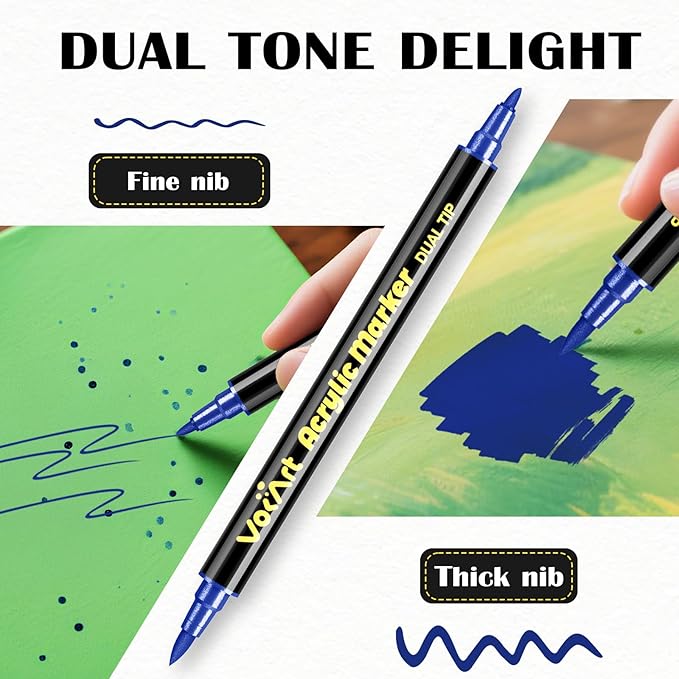 - 120 Vibrant Colors with Dual Tips – Each acrylic paint marker features a versatile brush tip for bold strokes and a fine tip for detailed work, offering endless creative possibilities for artists, kids, and craft lovers.