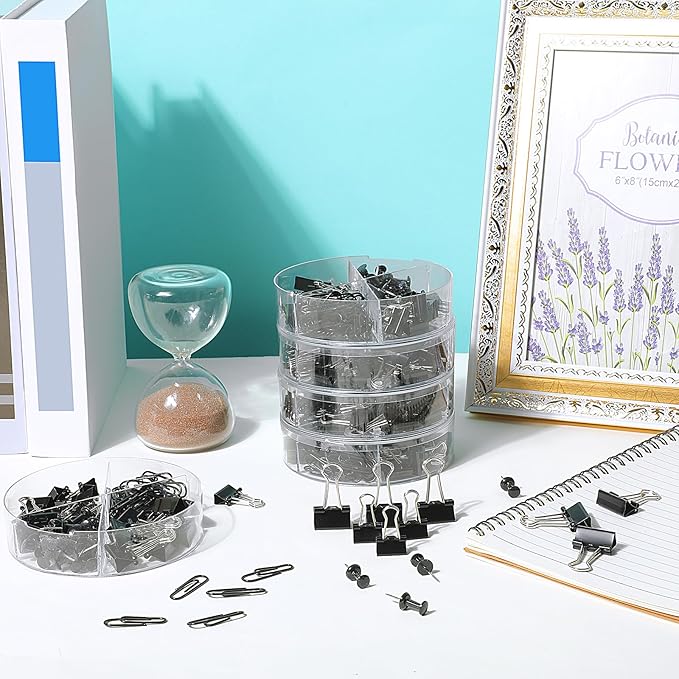 - Exquisite Office Supplies Set: each box contains 4 essential office supplies, including 7 medium binders, 13 small binders, 20 thumbtacks and 25 paper clips; The total number of 24 boxes are 1560 pcs to meet your office needs