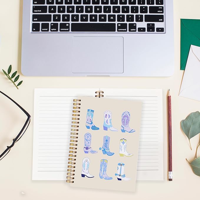 BearCake Blue Cowgirl Boot Notebook, Cowgirl Stuff, Cowgirl Gifts, Western Office Supplies, Western Stuff for Women, Boho Western Notebook Journal 5.5x8.3