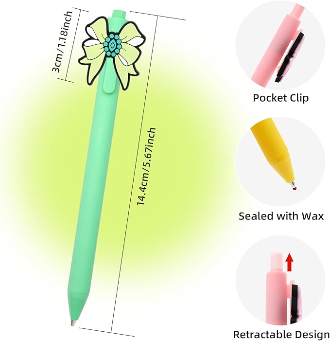 - 10-Pack Creative Bow Pens & Vibrant Colors: Brighten your day with this set of 10 adorable gel ink pens! Featuring unique bow-shaped clips and a delightful array of eye-catching colors, they add a touch of whimsy to notes and desks. Perfect for daily use and organization