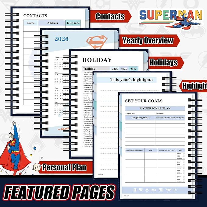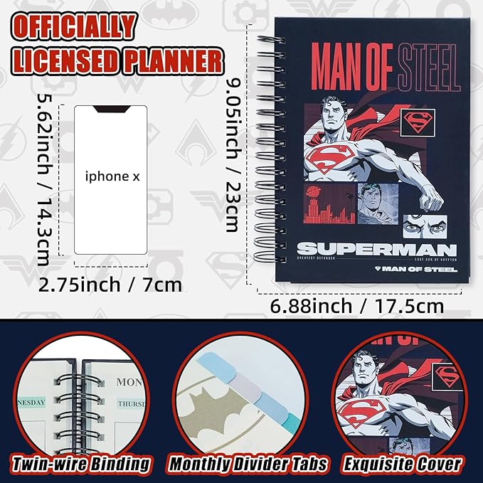 Hero Academic Planner, Weekly Monthly Daily Agenda, Custom Date Organizer for Time Management, Spiral Bound Notebook with Colorful Tabs,Datebooks for School Office Home(Navy Red)