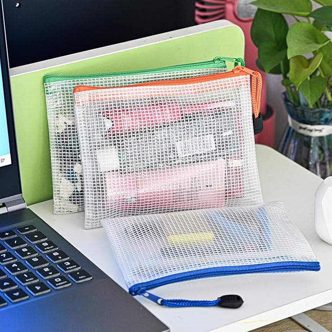 D-KINGCHY 24Pcs Zipper Storage Bags, Plastic Mesh Zippered Pouch for Organization, Waterproof Versatile Bags for Office Supplies School Travel