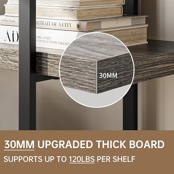 - Stable and Durable Construction: Capable of holding heavy items securely, this bookcase features a matte black steel frame with X-shaped support, adjustable feet, and two anti-tip devices, ensuring enhanced stability and durability for your belongings
