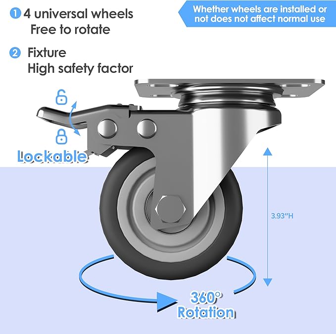 - [Swivel Wheels with Lock] Metal storage cabinet with wheels has 4 lockable wheels,you can move them around as needed and the casters and wheels work great on all the different surfaces,besides the wheels can be locked and you can fix the cabinet where you want to place.
