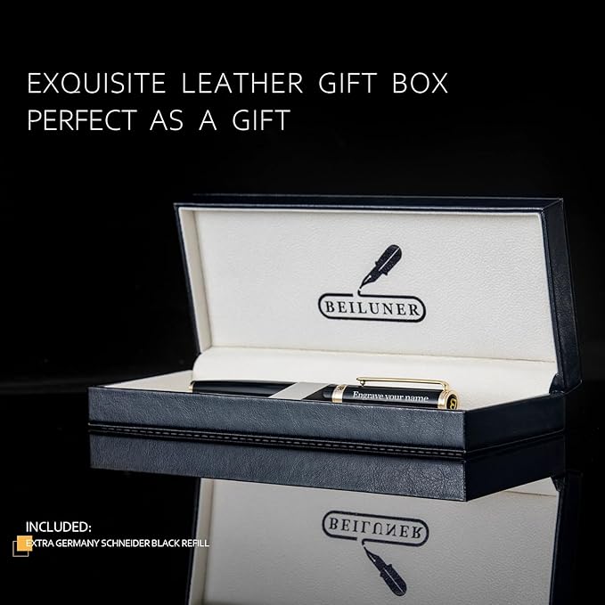 BEILUNER Black Personalized Pen,Stunning Luxury Lacquer With 24K Gold,Schneider Ink Refills,Multiple Fonts To Custom Rollerball,Gift Pen For Men & Women,Executive,Graduation,Christmas,Nice Pens