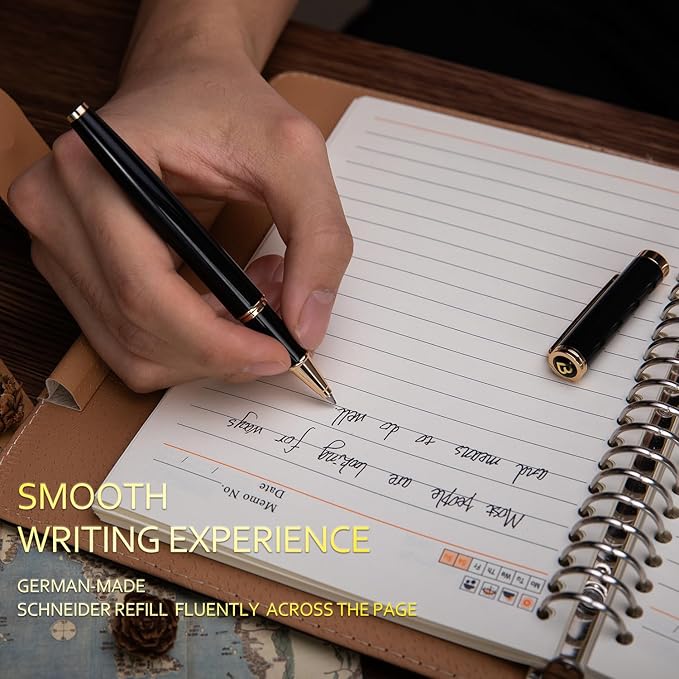 - Unparalleled Writing Experience–We use Schneider 850 ink refill from Germany, and provide excellent smooth writing experience, transcribing your thoughts effortlessly. Holding pen for your ideas and it makes you feel good.
