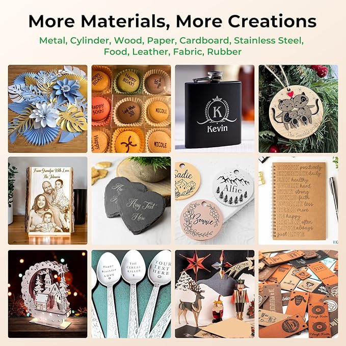 - 【Flexible Large-Scale Engraving】The laser engraver machine offers a larger working area of 400x415mm for you to engrave and cut larger materials in one go. And you can upgraded with rotary roller(buy extra) and raisers(buy extra) for customizing higher and cylindrical objects.