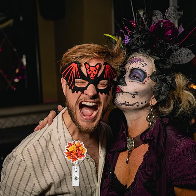Autumn Leaves Badge Reel Retractable Badge Holder with Alligator Clip Fall Acrylic ID Name Card Scroll Red Maple Leave Badge Clips Designs for Student Teacher Office School Worker Nurse Decoration