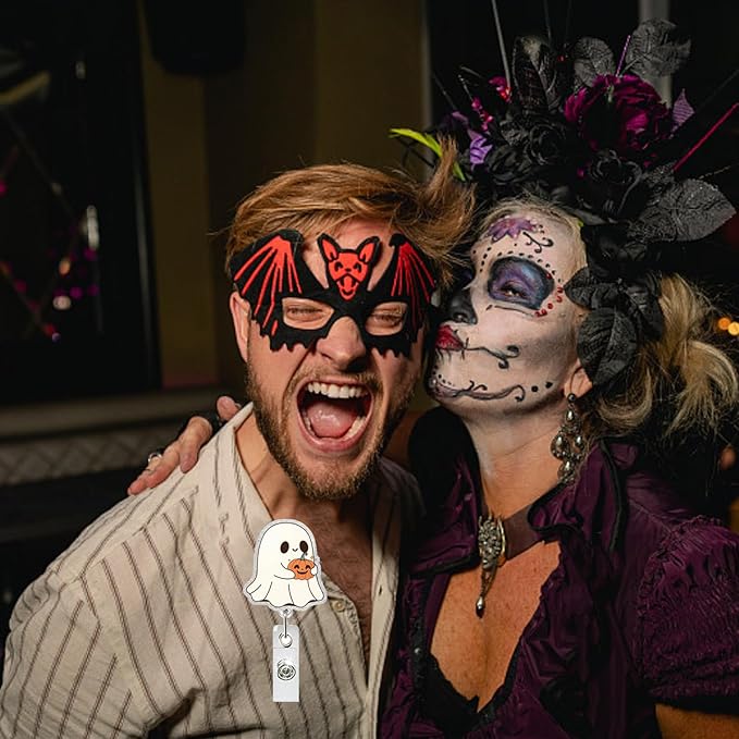 - Cute Halloween Design: The Halloween badge reel features an adorable ghost holding pumpkin design, making it a perfect accessory for the festive season, enhancing your work attire with a touch of Halloween spirit
