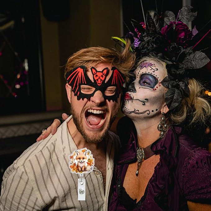 Cute Animal Badge Holders Fall Badge Holder with 360 Swivel Alligator Clip Acrylic Fox Badge Clip Designs Autumn Leaves Badge Reel ID Card Holders Name Card for Teacher Nurse Doctor Worker