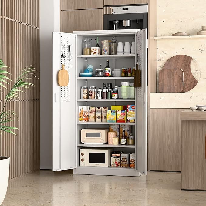 - [Adjustable Shelves&Large Weight Capacity] Garage storage cabinet has 5 adjustable and removable shelves, which can offer you flexible space. Each shelf of the storage cabinet can hold up to 120lbs.