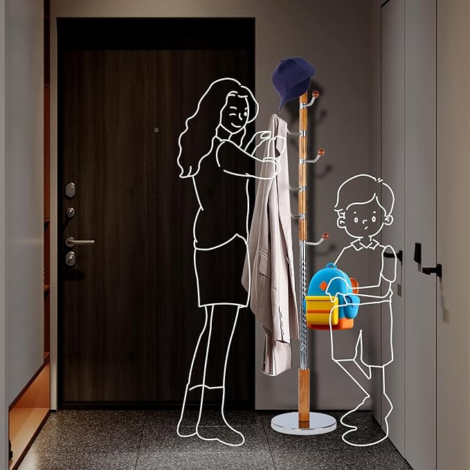 - 【A CLEAN AND TIDY HOME】Do you have the same trouble of disorderly arrangement of things? This freestanding coat rack can make your home look neat.Leave it by the door and use it when you go home or out, easily hanging up your jackets and bags, hat or coat,saving you time to organize.I believe you will love it!