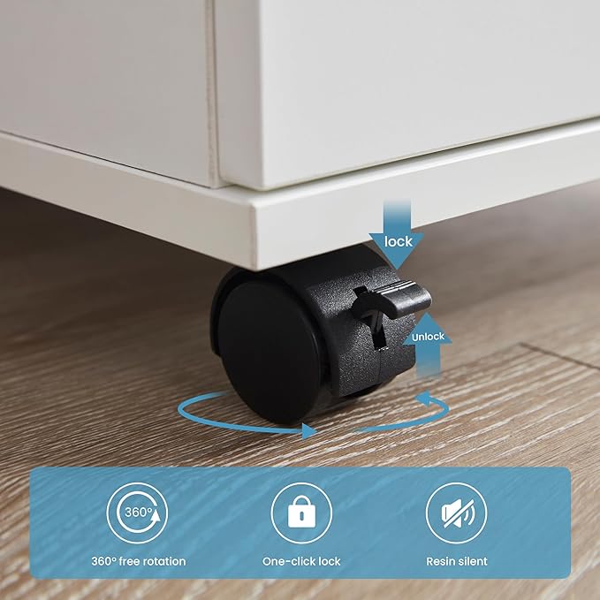 - Smooth-Rolling Casters for Mobility – Equipped with four durable casters (two lockable) for easy movement and stability, allowing you to reposition the cabinet effortlessly as needed.