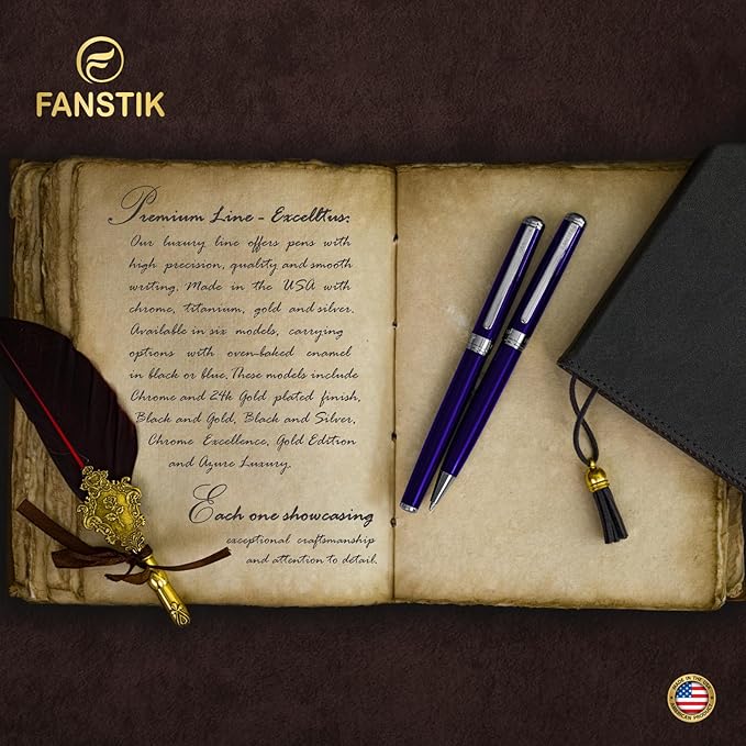 Blue Luxury fountain pen (Made In USA) fancy gift set for women, Chrome Finish, Professional executive pen gift set for men (Lux fountain Blue)