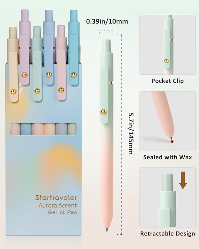 FIOVER Gel Pens, 6 Pcs 0.7mm Comfort Grip Quick Dry Black Ink Pens Fine Point Smooth Writing Pens, Cute Office Back to School Supplies Gifts for Women (12PCS Gradient Black Ink)