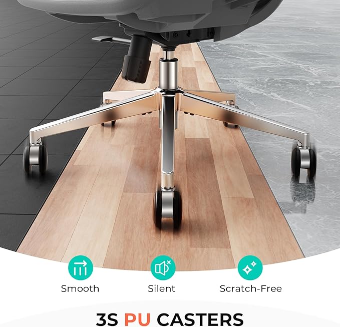 - 【DETAIL-ORIENTED】Wide, non-peeling soft armrests and a 90° flip-up feature paired with silent PU wheels, allowing it to smoothly roll under the desk to maximize your workspace without leaving marks on the floor.