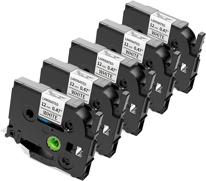 Anycolor Compatible with Brother P Touch Label Tape TZe TZ Tape 12mm 0.47 Laminated White Replace for TZe-231 Label Maker Tape Ptouch PT-D210 PT-D220 PT-H110 PT-D610BT PT-D600 PT-D410 PT-D400, 5pk