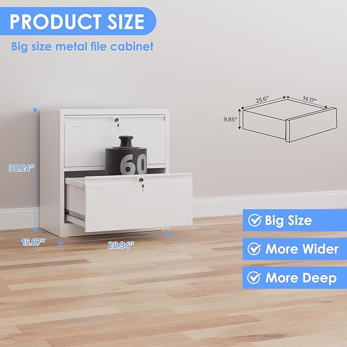 - [All-steel Stable-Rustproof] 2 drawer lateral file cabinet has a reinforced steel frame with a corrosion and stain-resistant powder coat, Rugged and not easily deformed,which is ideal for long-term use.