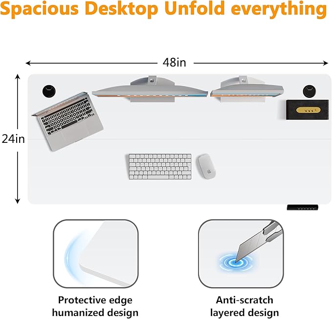 - 【Extra Large Workstation】– Boost productivity with our 48" L x 24" W desktop, providing ample space for monitors, keyboards, and office essentials. Designed for professionals and gamers, this clutter-free desk ensures a smooth workflow for work, design, or gaming. Enjoy functionality and freedom in one versatile workspace