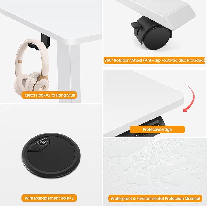- 【Durable & Quiet Motor】– Designed for peak performance, our electric standing desk boasts a high-quality motor that delivers smooth, quiet height adjustments from 27.9" to 46.8", while the advanced anti-collision system ensures safe operation without interruptions